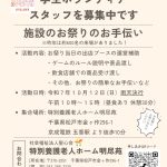 - 明尽苑祭りの学生ボランティアを募集しています!10月12日(日)開催の「明尽苑祭りの学生ボランティア」を募集しています!ボランティアに興味のある方は、ぜひお問い合わせください。申し込みは、画像QRコードまたは、特別養護老人ホーム 明尽苑 tel: 047-385-2 […]